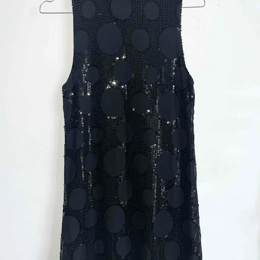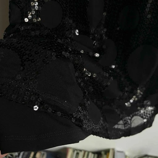 Mini robe noire en mesh et sequins, doublure pour éviter la transparence.