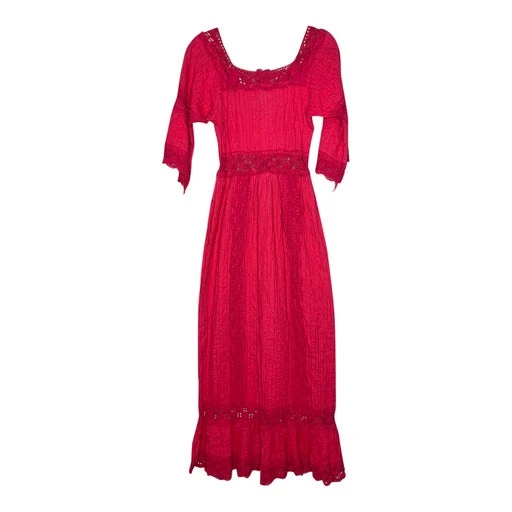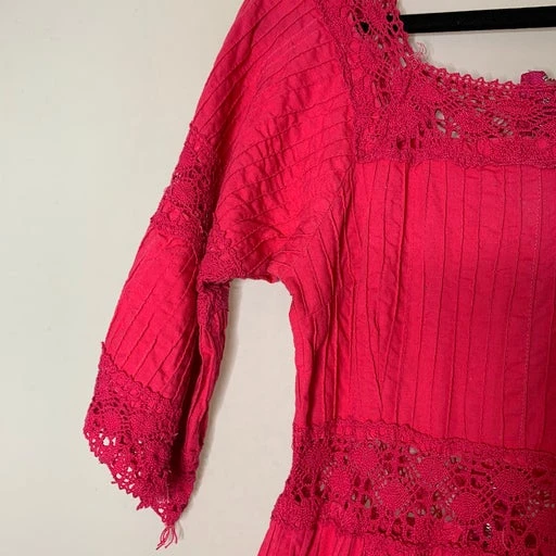 Robe en coton et dentelle rose, une pépite vintage des années 70.