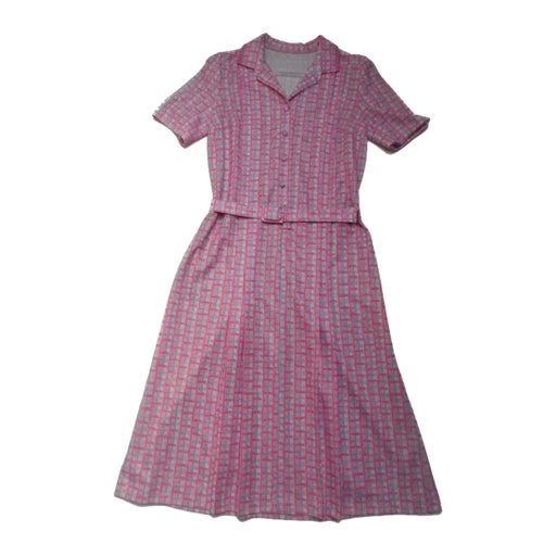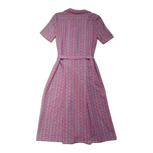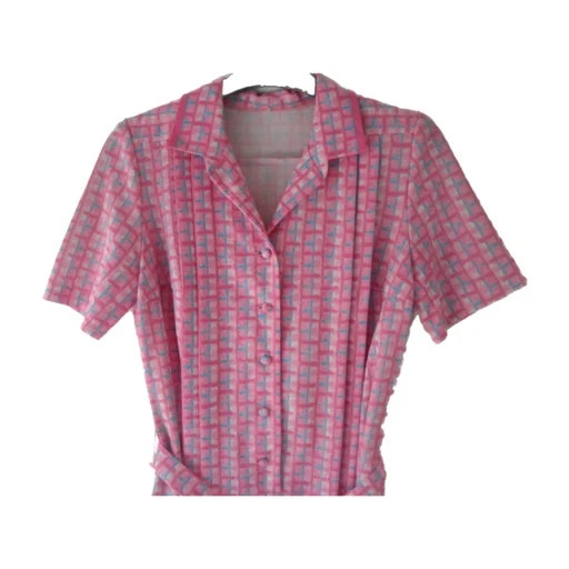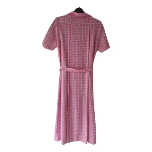 Robe à carreaux. Matière polyester. Fermeture boutonnée. Ceinture en tissu assortie. Plis creux sur la jupe.
