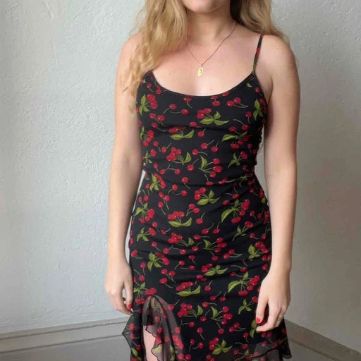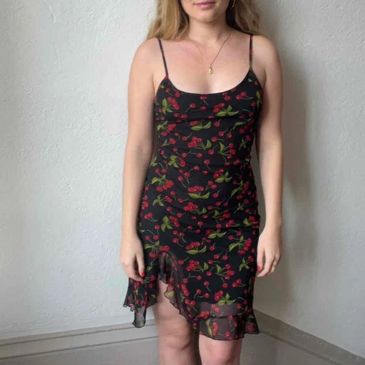 Robe à cerises, années 90. Petit volant sur le bas, parfait état. Taille 38.