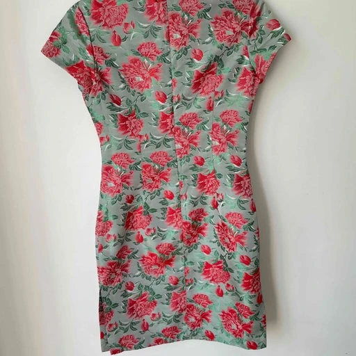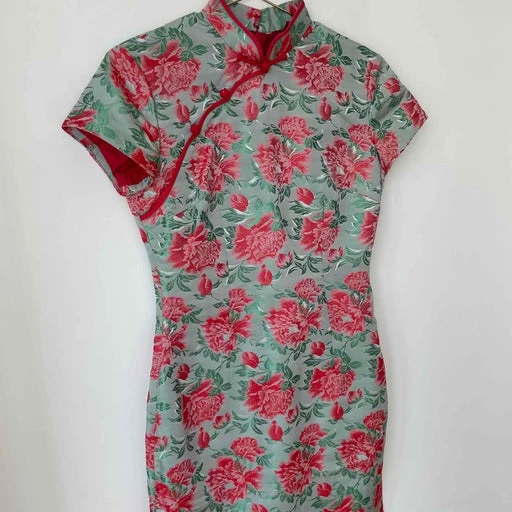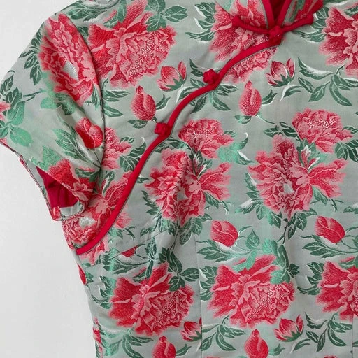 Robe asiatique romantique à fleurs avec jolis boutons en forme de fleurs.