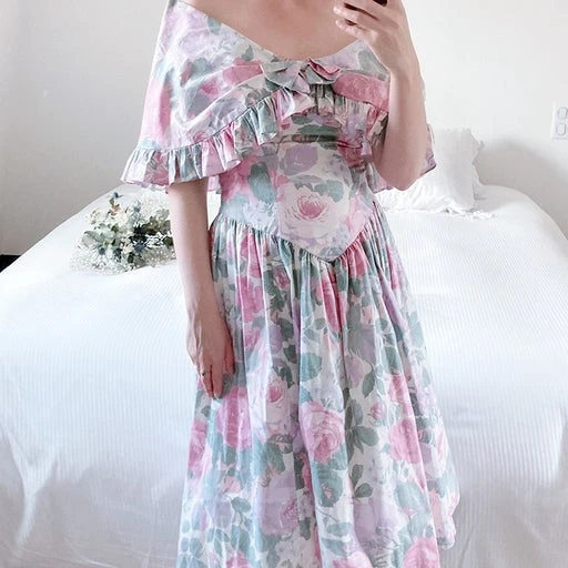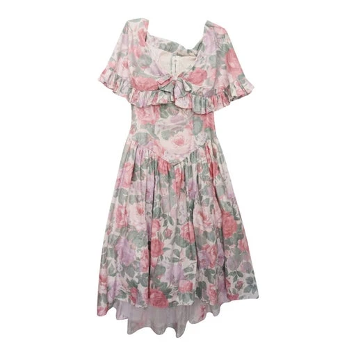 En coton et polyester fleurs à l’anglaises rose, parme, vert et blanc cassé