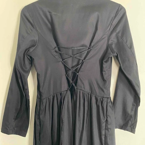 Robe Agnès B en coton. Grand décolleté. Fermeture boutons pressions nacrés et fermeture éclaire invisible sur le côté. Laçage dos.
