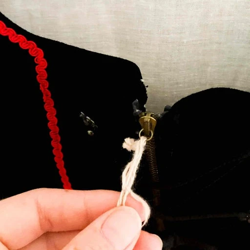 | Défauts | Défaut : manque une partie de la fermeture éclair, elle a été replacée par un bout de corde (je l’ai chiné comme ça) |