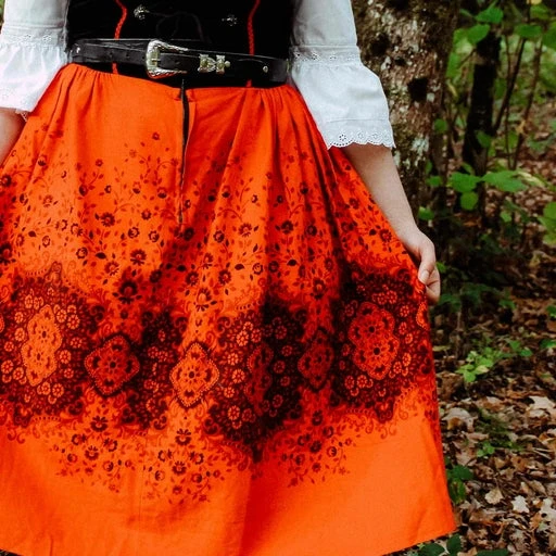 Dirndl robe autrichienne rouge et noire, partie haute en velours noir.