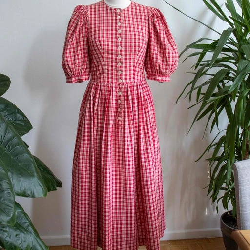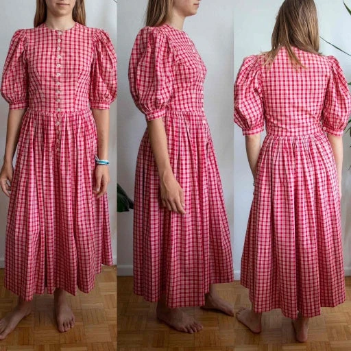 Robe autrichienne en coton avec manches bouffantes. Doublure en lin et coton, une poche. Jupe non doublée.