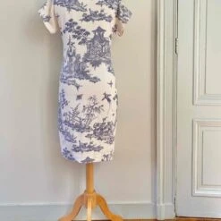 Robe Cacharel à fleurs. Zip sur le côté et petit bouton au dos. Ceinture en forme de rose . Doublée. Légère. Le modèle fait un 36 et mesure 1m65
