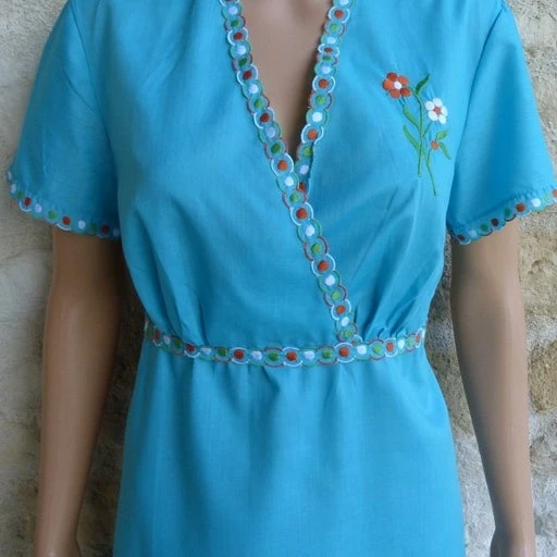 Couleur bleu avec broderies.