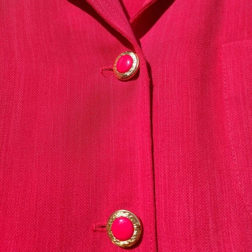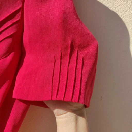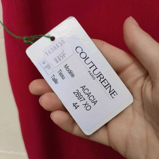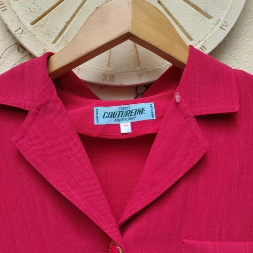 Robe rose framboise Paris Coutureine, droite, jamais portée étiquettes encore présentes, valeur : 885 F.