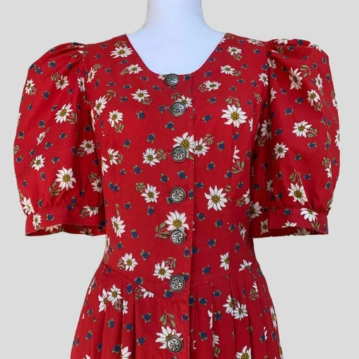 Très bel imprimé fleurs alpines : rouge/écru/violet/vert/ocre.