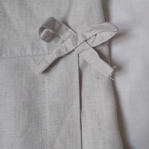 Robe effet portefeuille lin et coton à fines bretelles. De ma marque la Sirène, fabriquée en France. Elle se ferme par une glissière au dos. 70% lin et 30% coton. La largeur d’épaules indiquée correspond à entre les bretelles, et la longueur inclue les bretelles.
