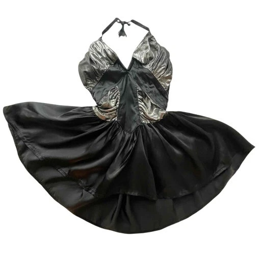 Robe en lurex argentée et noire.