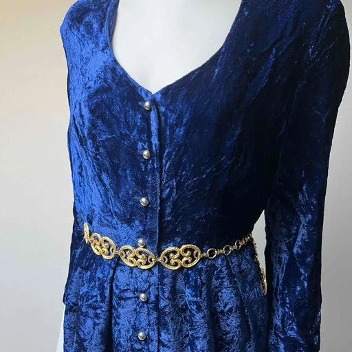 Robe en velours bleu nuit.