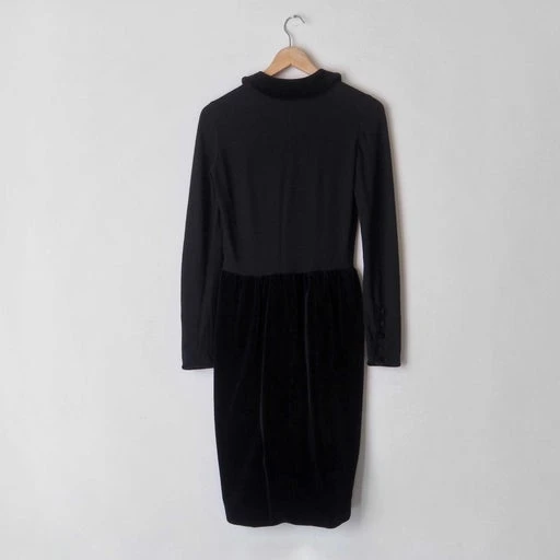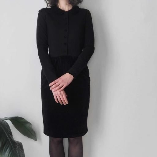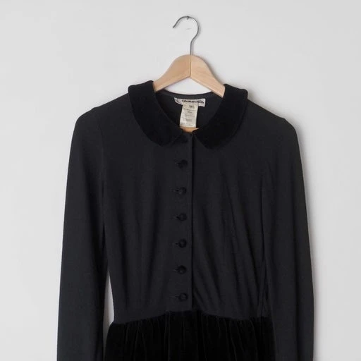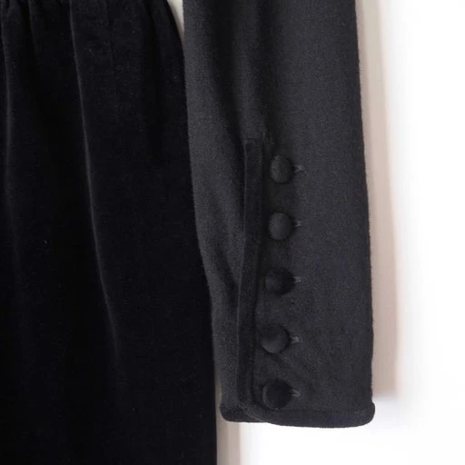 Top en laine, partie jupe et boutons en velours (74% coton).