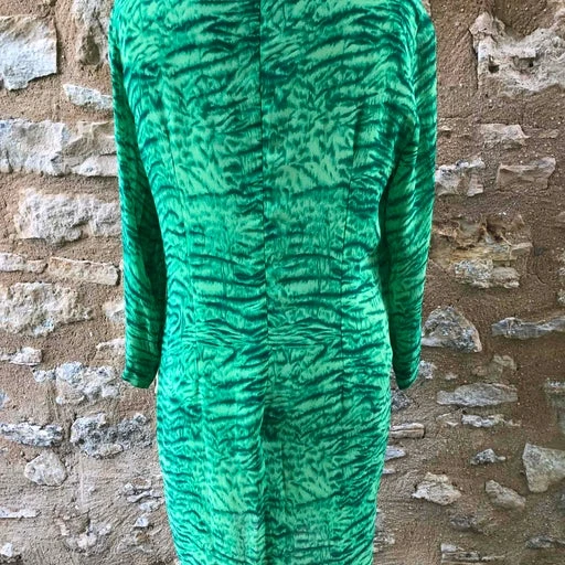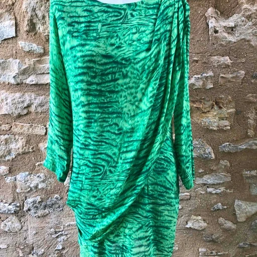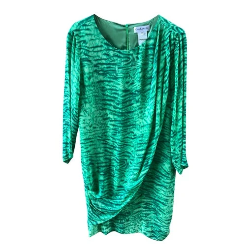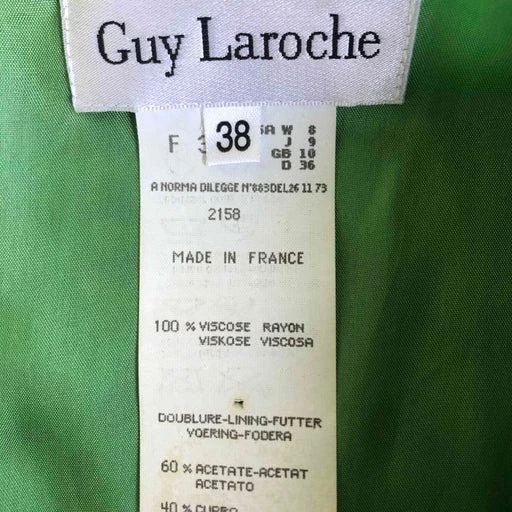 Robe Guy Laroche en viscose et acĂ©tate de couleur verte. Beau plissage au niveau d’une Ă©paule.