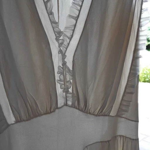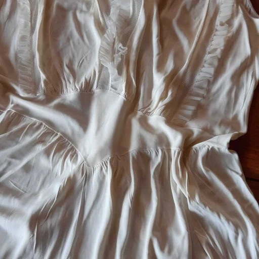 Robe longue des années 50s, dentelle, joli tombé et belle qualité. Aussi belle en tenue d’intérieur qu’en petite robe de bal!