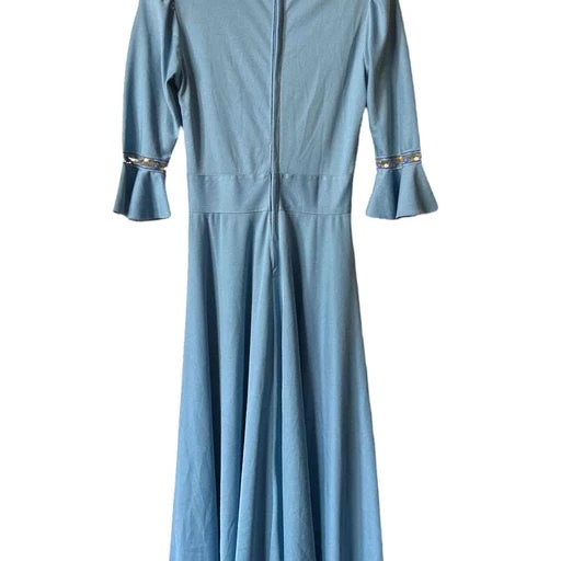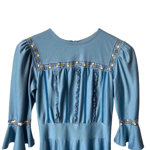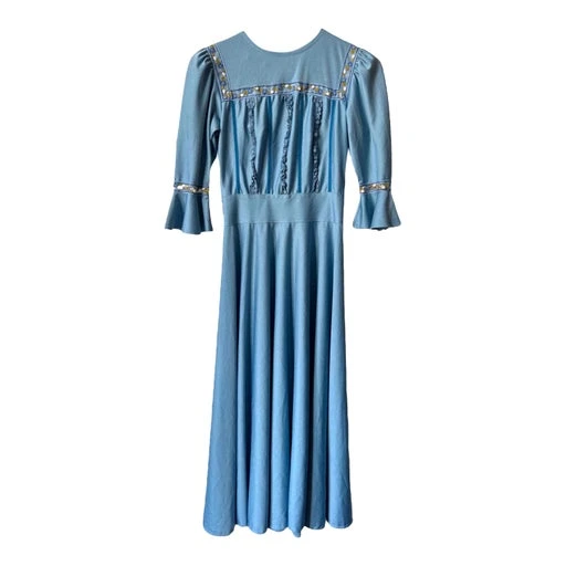 Robe longue bleu champêtre des années 70 made in France en viscose