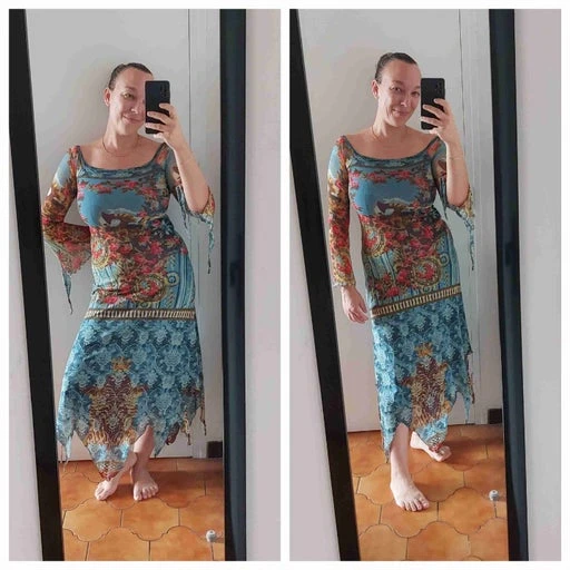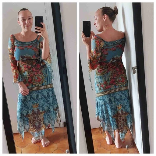 Couleurs lumineuses. Doublée. Large encolure. Parfait état.