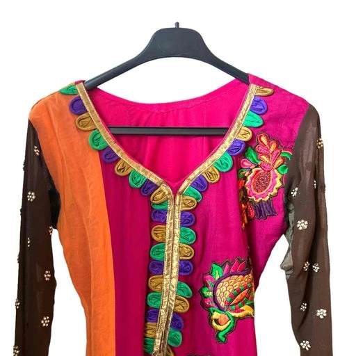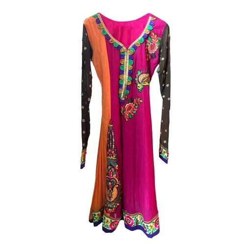 Très belle robe longue légèrement ajourée manches longues folklorique indienne avec de nombreux détails de broderies et de perles vintage des années 70