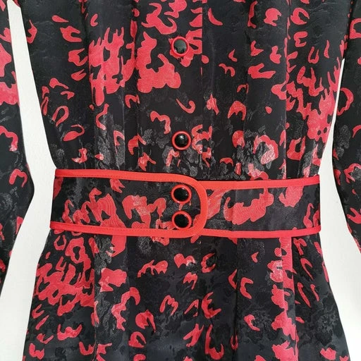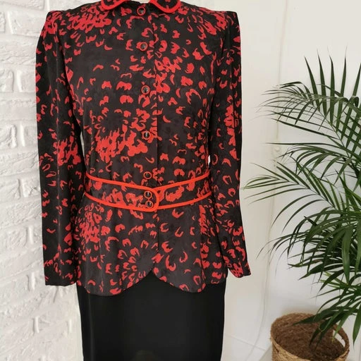 Boutons sur la partie haute et ceinture Ă boutonner et pans arrondis devant.