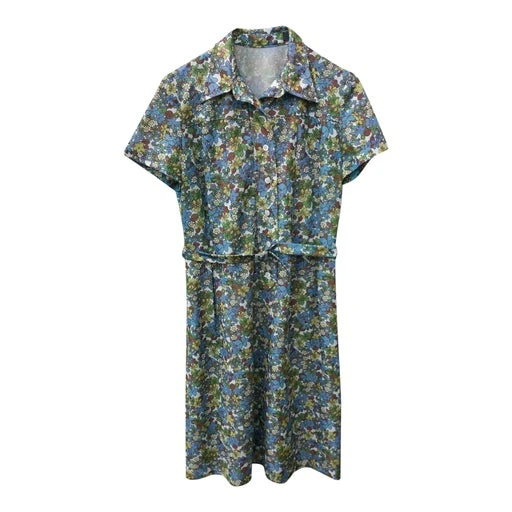 Robe midi à fleurs boutons devant et ceinture assortie.