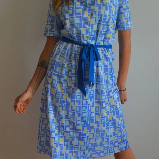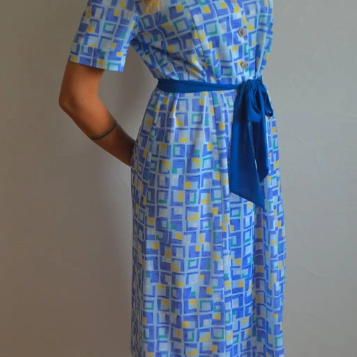 Parfaite pour un look rétro avec son mouchoir décoratif dans la poche, son imprimé gémomètrique et ses couleurs claires et lumineuses.