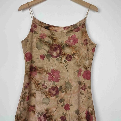 Robe mini asymétrique à fleurs, fines bretelles, made in France, années 90.