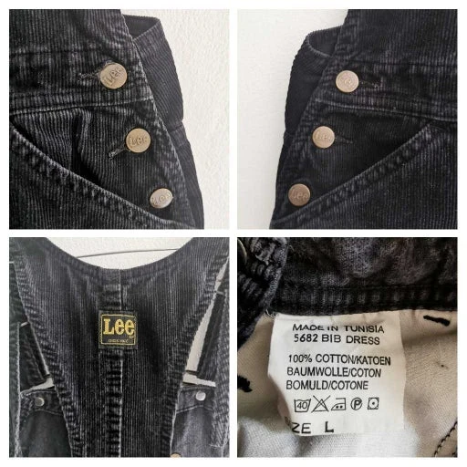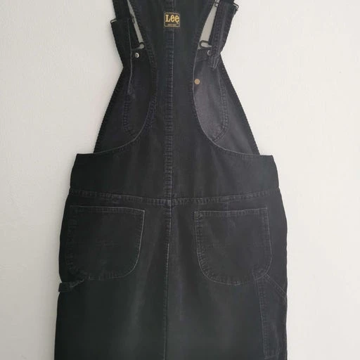 Robe salopette de la marque Lee. En velours côtelé noir. Multipoches. Bretelles réglables. Largeur de la taille au plus étroit : 41 cm. Bel état.