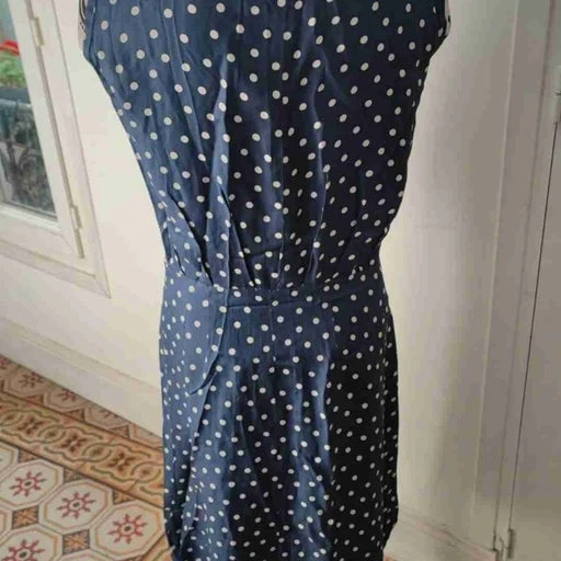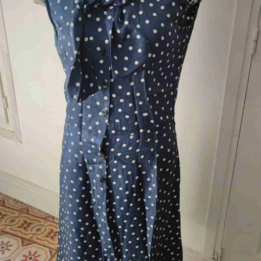 | Défauts | Bon état général (petits accrocs au niveau d'un bouton et un au niveau de la taille et sous une aisselle cf photo mais vraiment rien de méchant, plusieurs petits fils tirés sur le bas de la robe mais ne se voit pas beaucoup cf photo) reste en bon état pour son âge. |