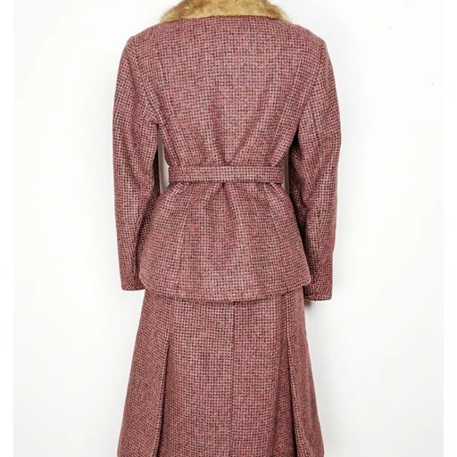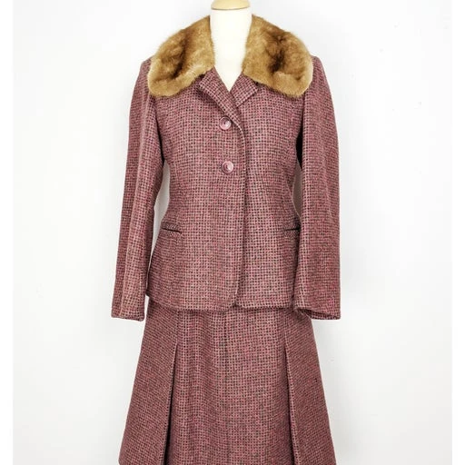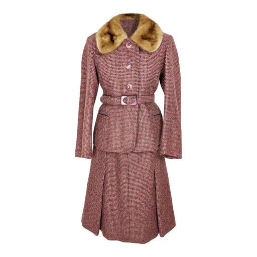 Tailleur robe fuchsia, marron, rouille, gris. Ensemble très chaud.